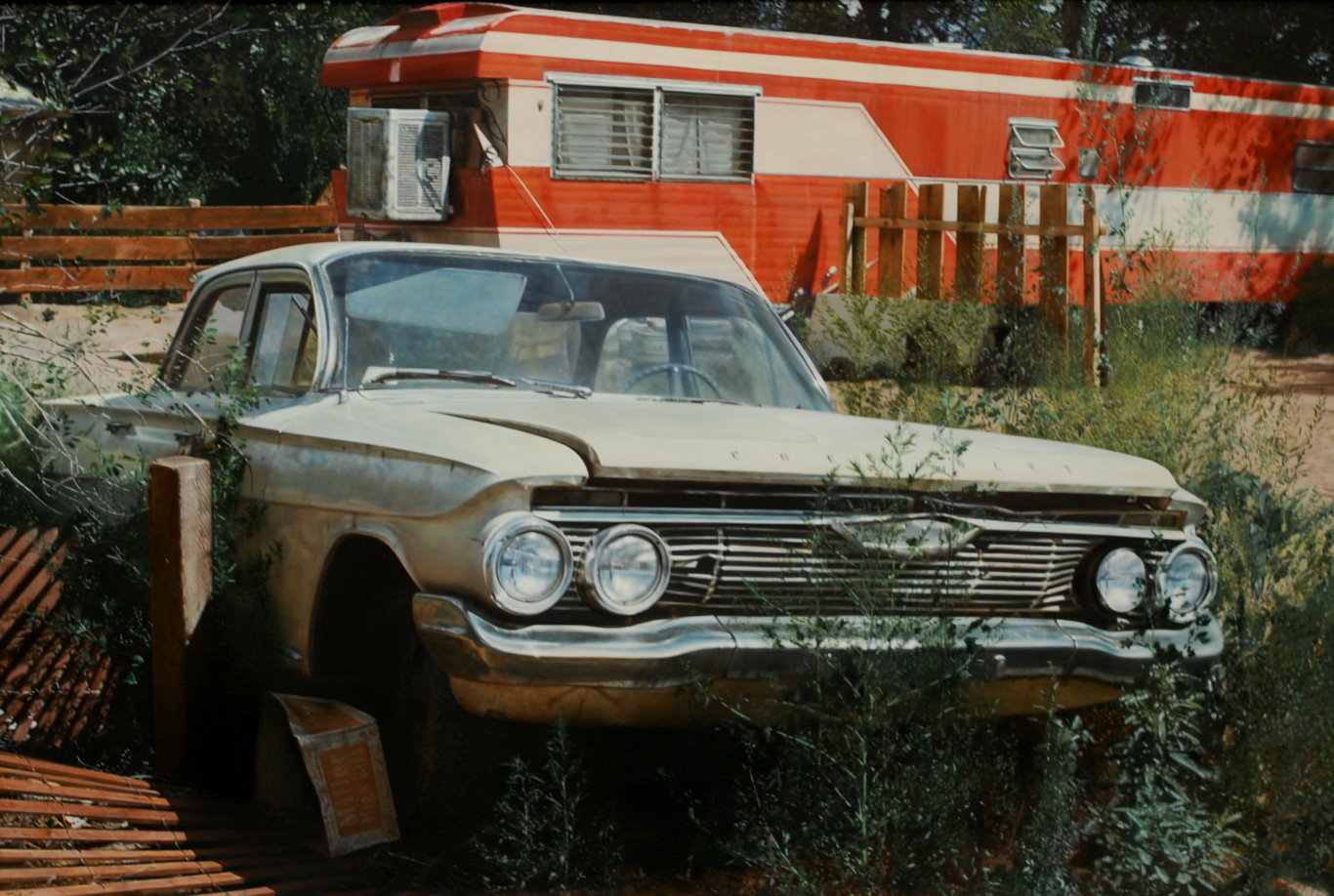 "White Chevy, Red Trailer" by the great John Salt, 1975, airbrushed acrylic on canvas.